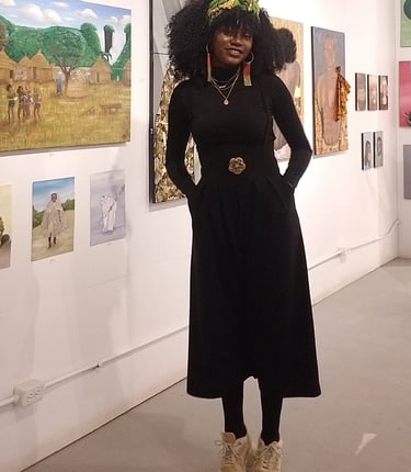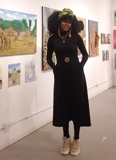efe ogboru blends vibrant ankara and rich symbolism into bold art that tells stories of heritage and identity.